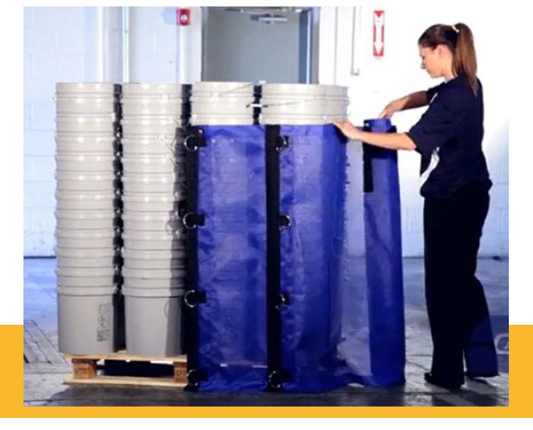 目前已知的托盤捆扎物品主要有“纏繞膜”、“簡(jiǎn)易捆扎帶”。市面應(yīng)用的“纏繞膜”雖然拉升性能好,透明度高;但其一次性使用成本較大,且不能重復(fù)使用,不利于環(huán)保,此外,“纏繞膜”在使用過程中需要借助人力、機(jī)器才能達(dá)到捆扎的目的和作用,須花費(fèi)很大的人力和財(cái)力。