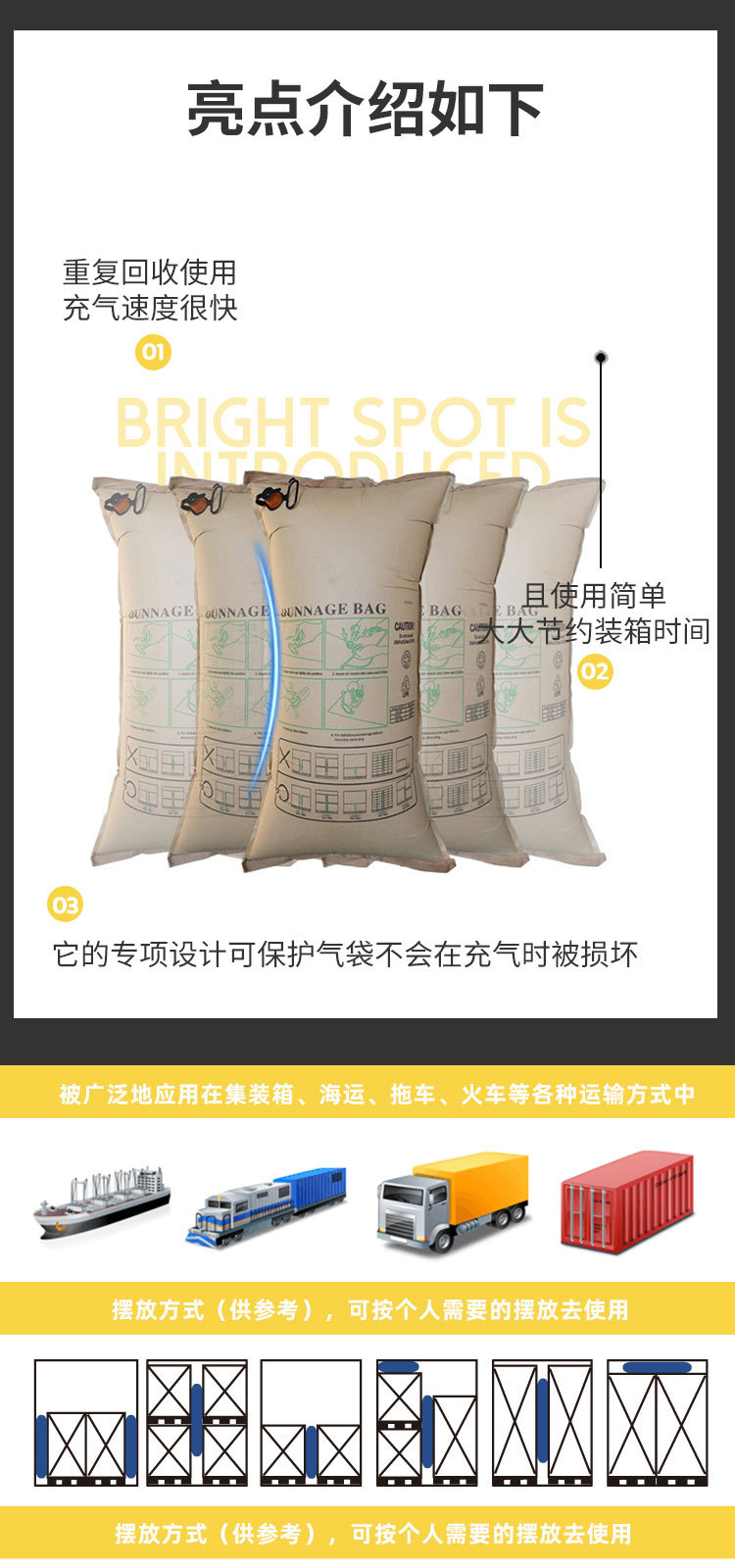 各種運輸方法上,集裝箱專用填充氣袋都能達到保護貨物的理想成果