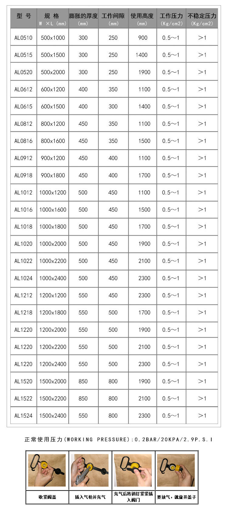 充氣袋的常用規(guī)格